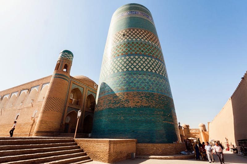 古代ヒヴァの領土に位置ミナレット。計画によるとミナレットの高さは70〜80メートルで、直径はミナレット強くするために上がれば上がるほど劇的に減少する予定だった。