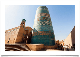 厚い壁に囲まれましたヒヴァの歴史的都心〝ホレズムのオアシスの真珠〟は1990年にユネスコの世界遺産に登録され保存されました。1997年にヒバは